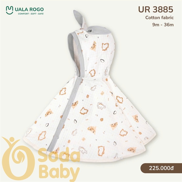 Uala Áo choàng cotton 3885 - Ghi Gấu