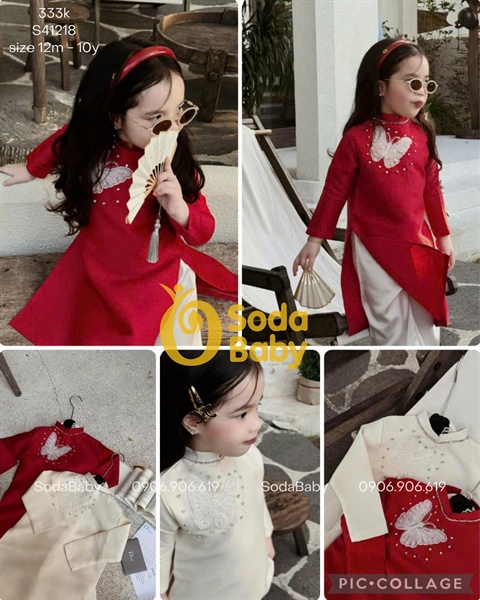 Set áo dài BG trắng tơ thêu cổ đính hồ điệp