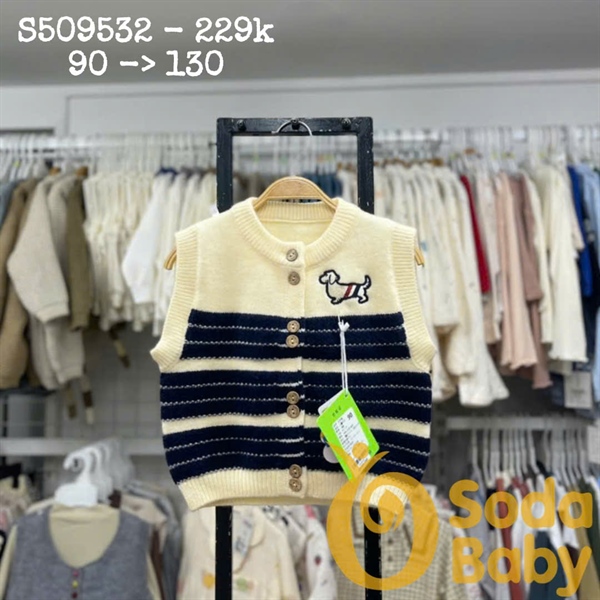 Áo gile kẻ ngang thêu gấu - Kem (80-130)