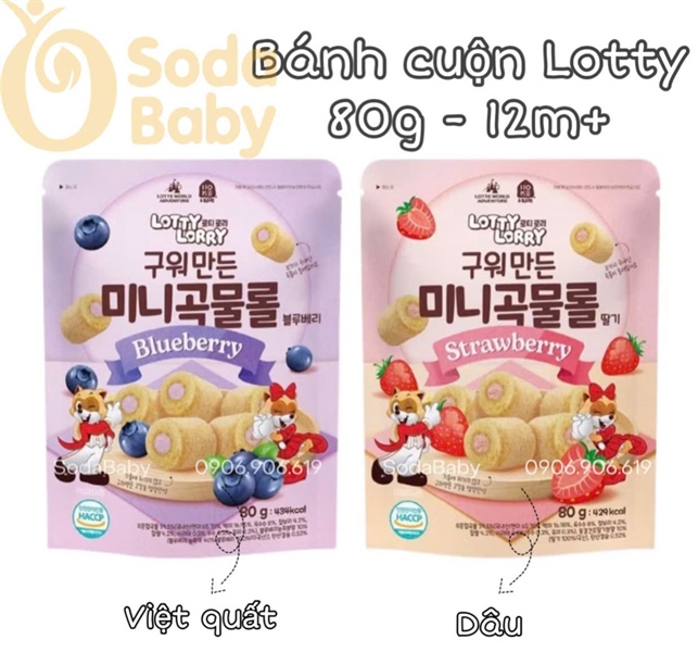 Bánh cuộn Lotty 80g - 12m+ Dâu