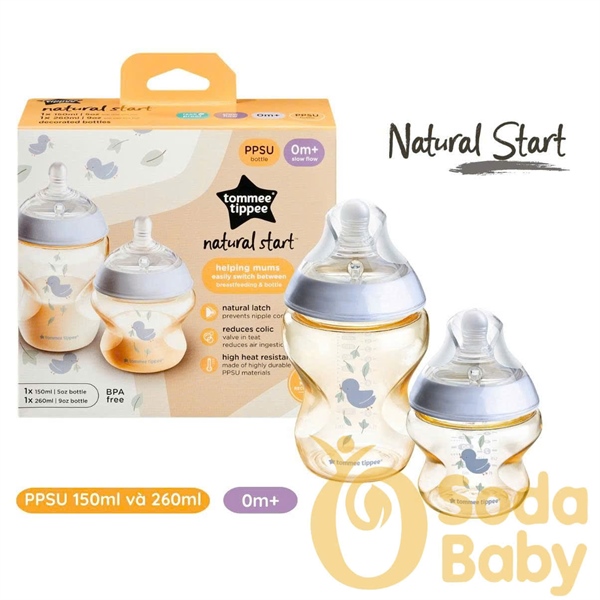 Bình sữa Tommee Tippee PPSU (0m+) - set 1b 150ml và 1b 260ml - Xanh HT