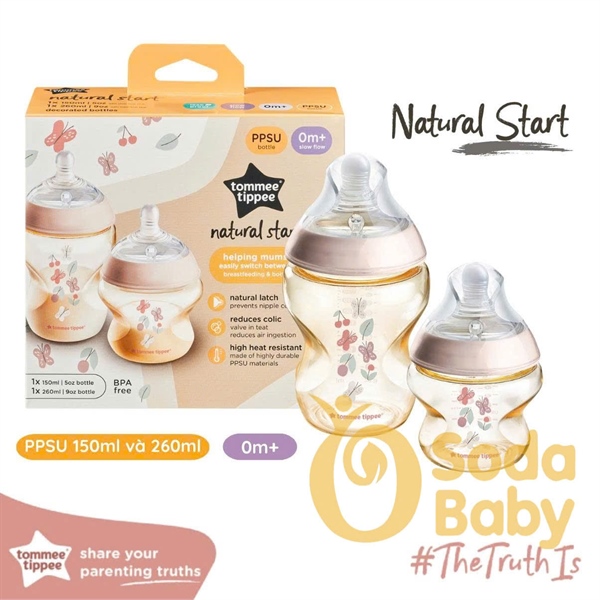 Bình sữa Tommee Tippee PPSU (0m+) - set 1b 150ml và 1b 260ml - Hồng HT
