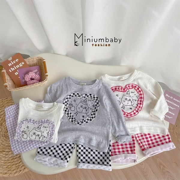 Bộ dài trái tim caro - Tím (80-120)