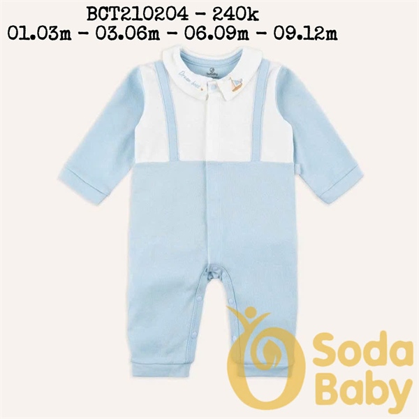 Bu Body dài tay cài giữa cổ Peter Pan - Trắng - Blue