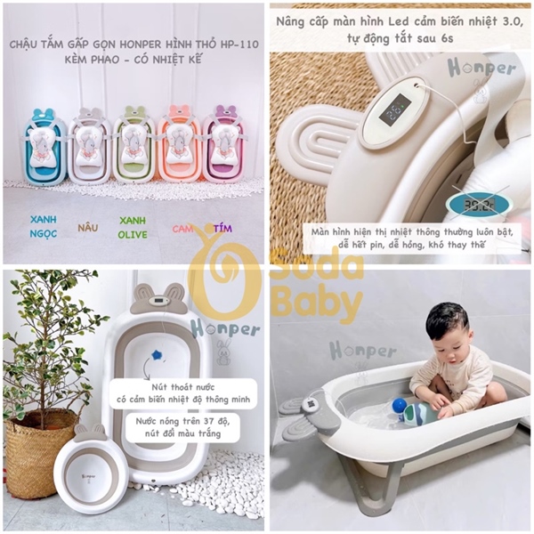 Chậu tắm gấp gọn kèm nhiệt kế con thỏ Honper