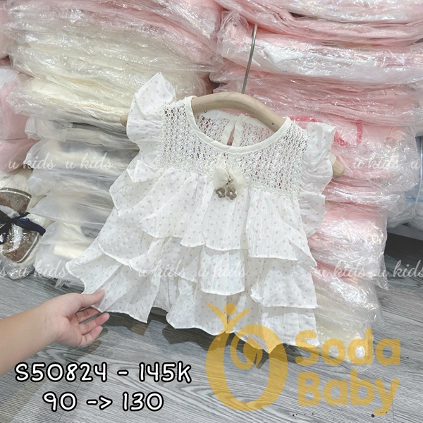 Đầm tầng chấm bi hồng 8136