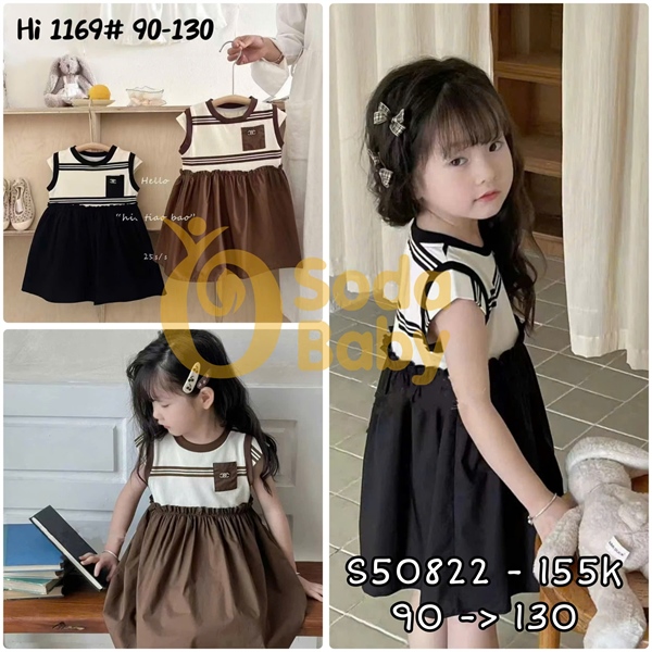 Đầm sát nách kẻ 1169 - Nâu