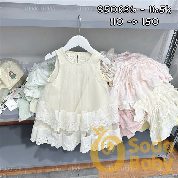 Đầm sát nách voan tầng - Kem