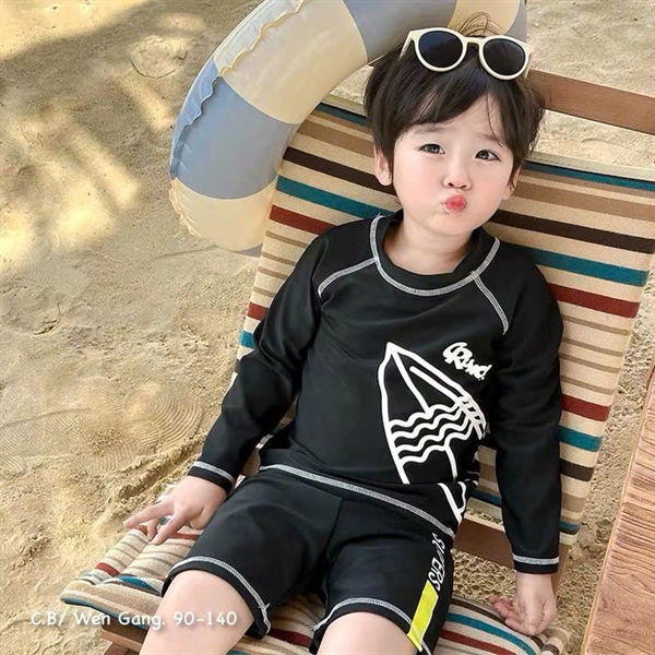 BT Bộ bơi dài tay quần ngắn đen - thuyền (90-140)