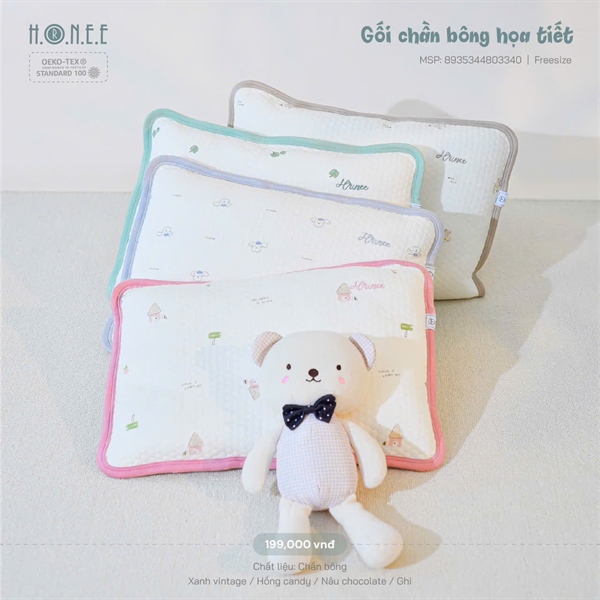 Nous Gối định hình chữ nhật trắng in HT con sóc
