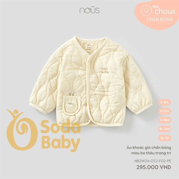 Nous Áo khoác gió chần bông màu be thêu trang trí
