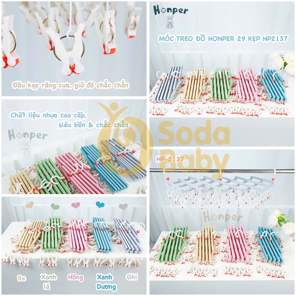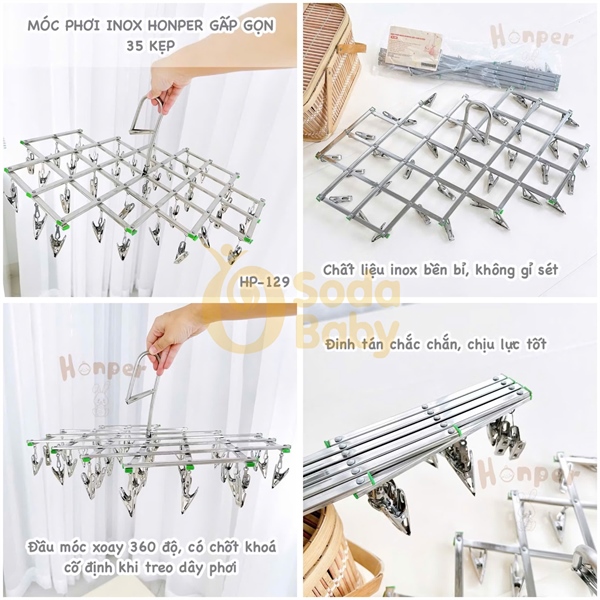 Móc chùm inox Honper129 gấp gọn 35 kẹp