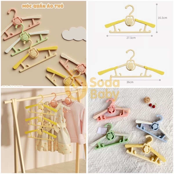 Móc quần áo hình gấu điều chỉnh độ dài (set 5)