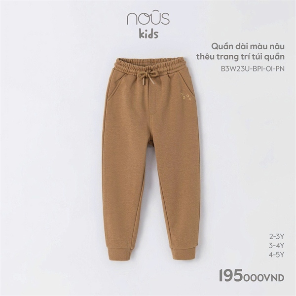 Nous Quần dài nâu thêu trang trí túi quần