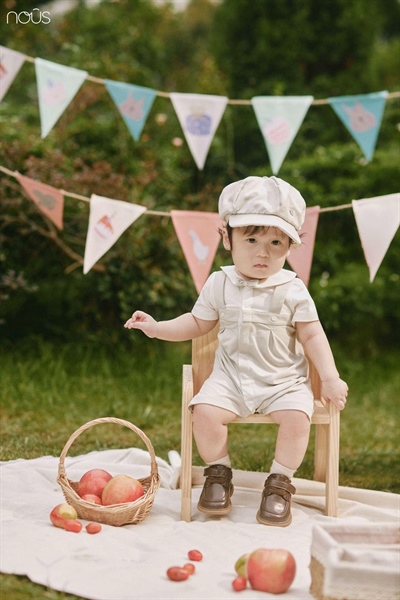 Nous Bộ cộc trắng phối kẻ nâu đính nơ
