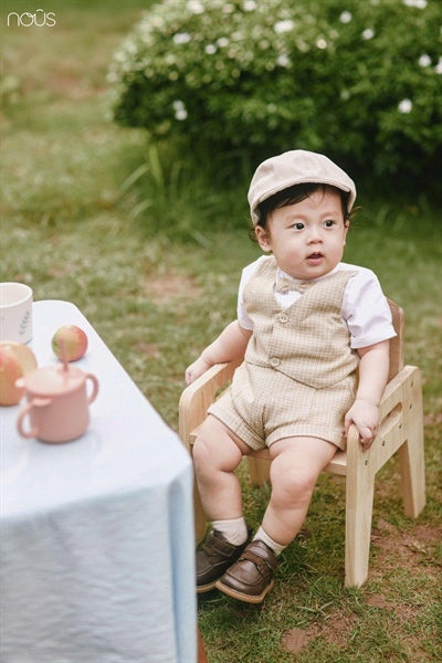 Nous Bộ vest nâu phối trắng đính nơ