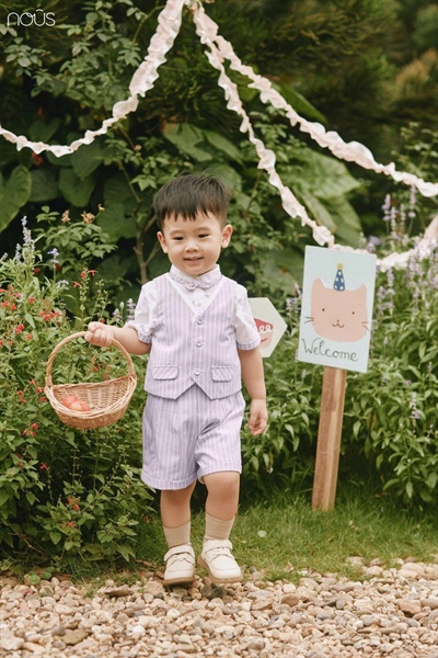 Nous Bộ vest nâu phối trắng đính nơ