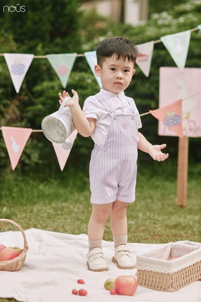 Nous Bộ yếm kẻ ghi kèm áo sơmi trắng