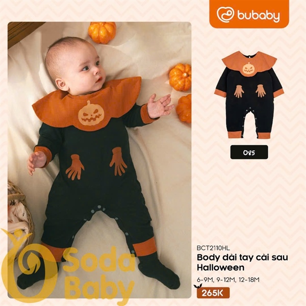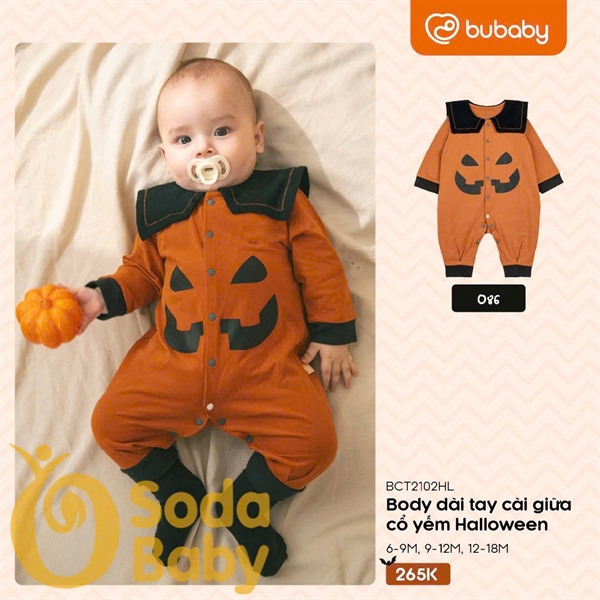 Bu Body dài tay cài giữa cổ yếm Halloween - Cam - Đen