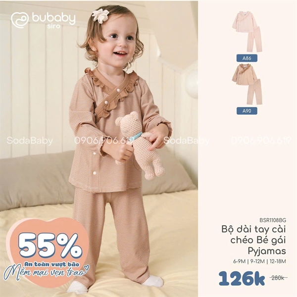 Bu Bộ dài CL bé gái pyjama - Kẻ cam đất