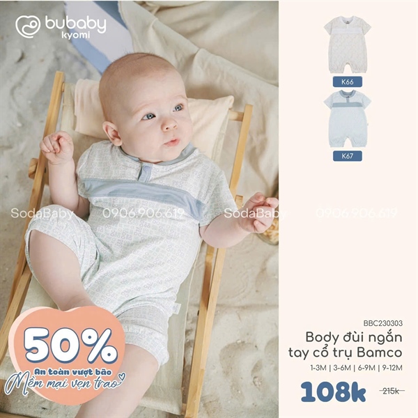 Bu Body đùi cổ trụ Bamco - Trắng in HT Iconic nâu