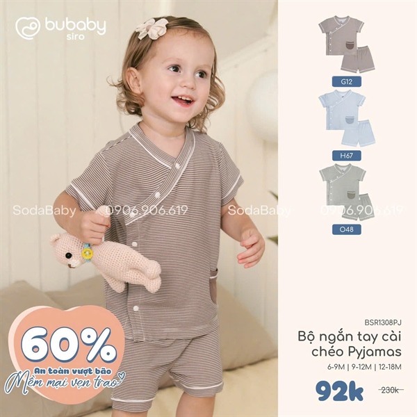 Bu Bộ ngắn CL pyjama - Kẻ nâu