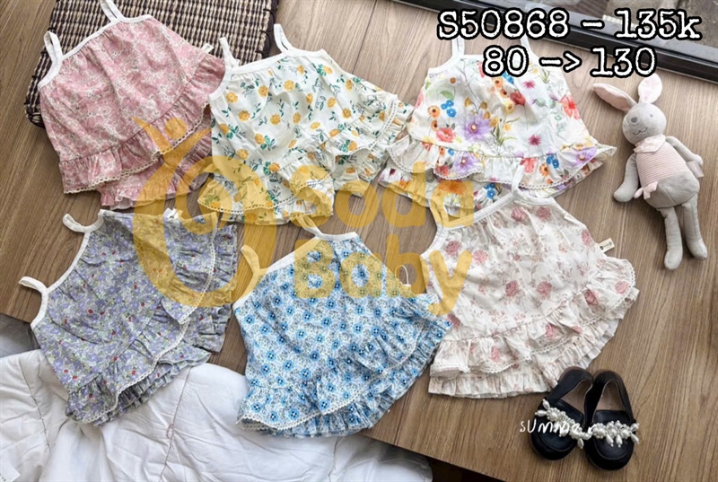 Bộ ngắn 2 dây hoa nhí - Hồng