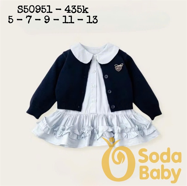 Set váy cổ sen tay dài kèm áo cadigan 4902