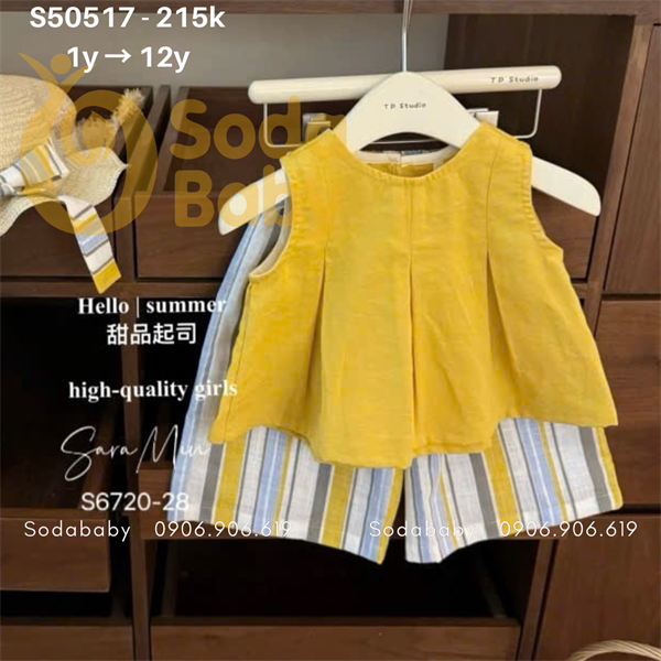 Bộ 3 lỗ BG vàng quần kẻ Sara