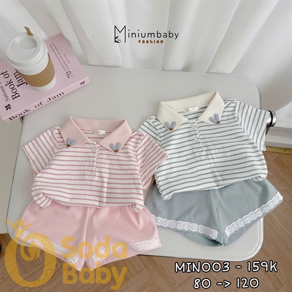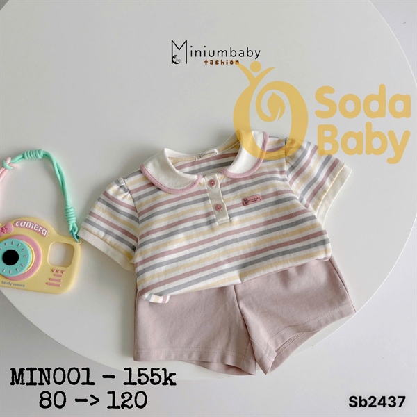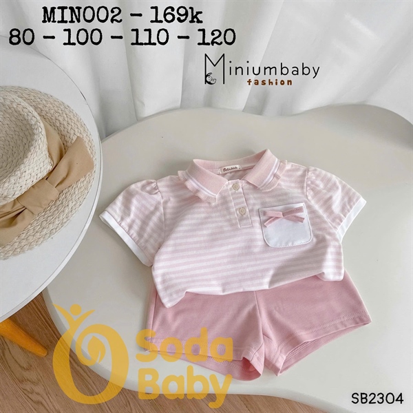 Set ngắn BG áo kẻ phối túi nơ (80-120)