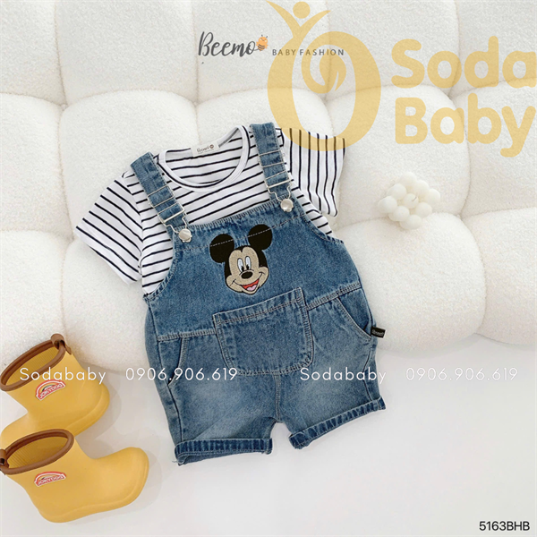 Set yếm kaki + áo thun kèm kẹp tóc thỏ