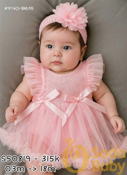 Bodychip váy công chúa nhí kèm turban - Hồng