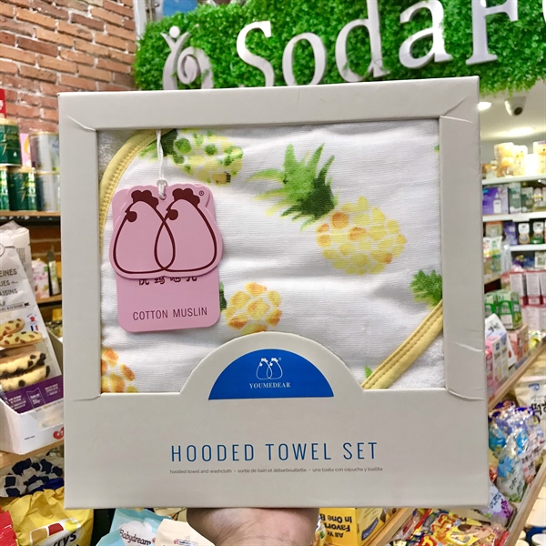 Khăn Muslin mặt lông liền nón xuất Anh (76*76) - Dứa viền vàng