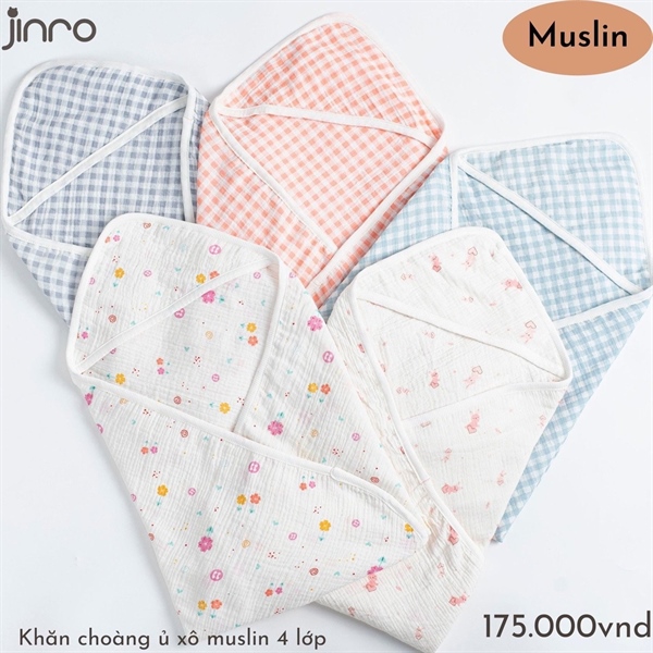 Ủ choàng musilin 4 lớp Boow nhiều HT 75x75