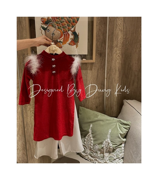 Áo dài nhung thêu hoa Cúc Chi BG 2025 Kaku - đỏ