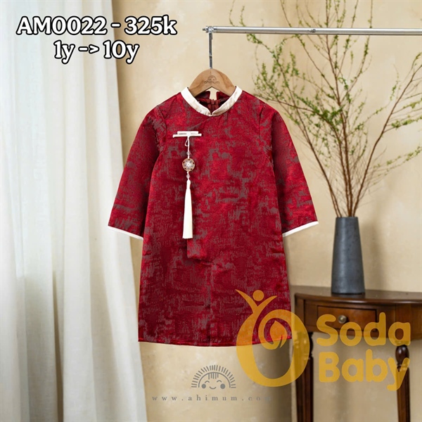 Set áo dài tùng vân Bernie (80-130) - Đỏ