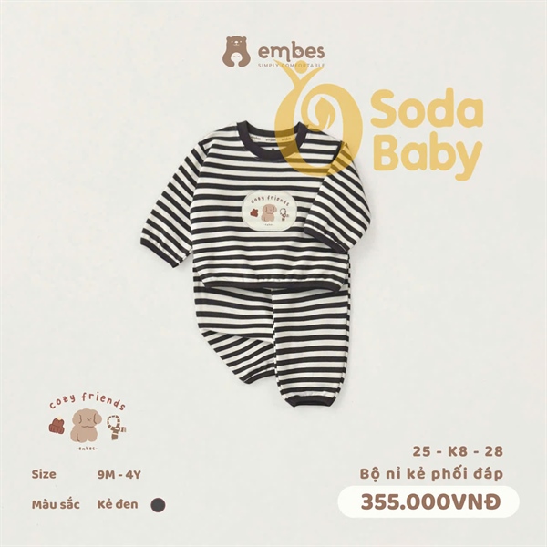 Embes Bộ dài nỉ kẻ 'Embes friends' - Đen