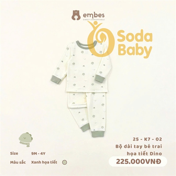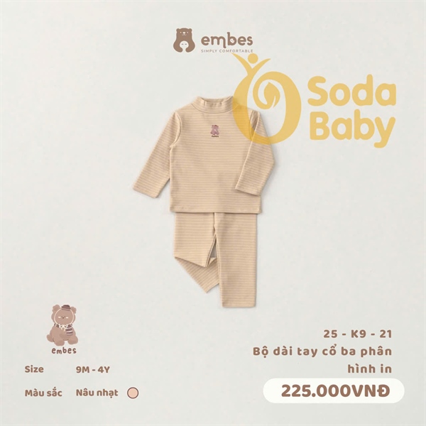 Embes Bộ dài tay cổ 3 phân hình in - Be