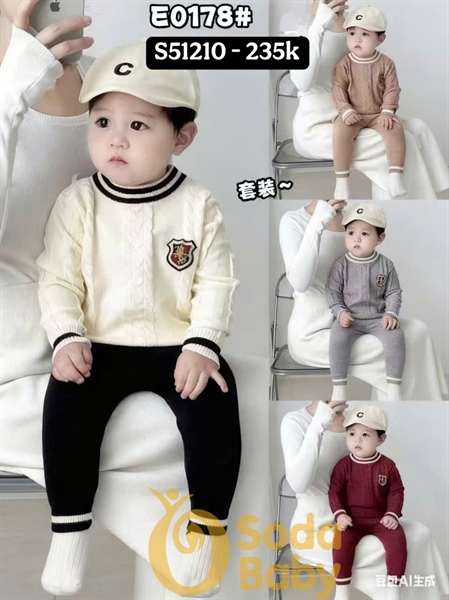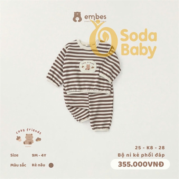 Embes Bộ dài nỉ kẻ phối đáp - Nâu