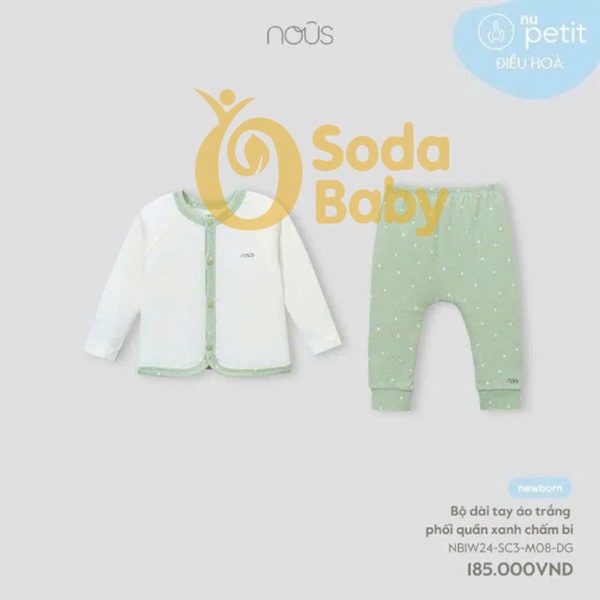 Nous Bộ dài ss áo trắng quần xanh chấm bi
