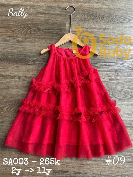 Đầm công chúa hai tầng nơ (2y-11y) - Đỏ