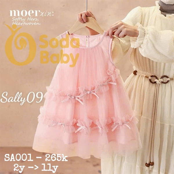 Đầm công chúa hai tầng nơ (2y-11y) - Hồng