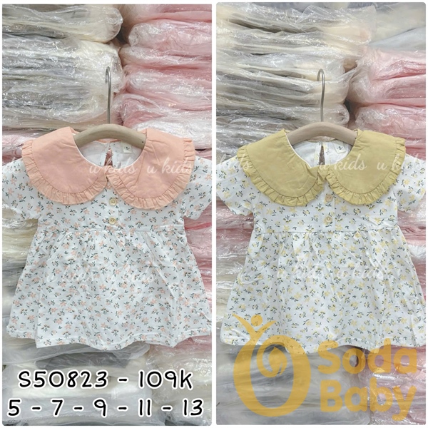 Đầm hoa nhí cổ bèo 6632 - Vàng đất