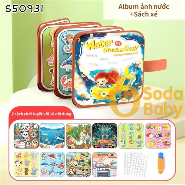 Cuốn sổ ma thuật 2in1 bóc dán + tô màu nước