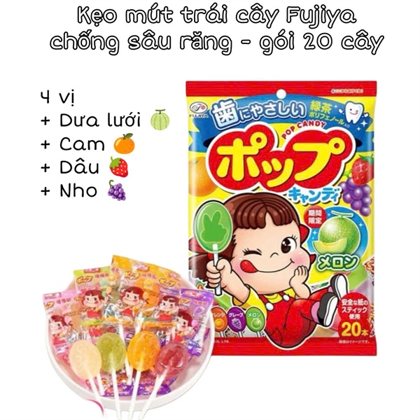Kẹo mút Fujiya chống sâu răng 2y+ - gói 20c (mix 3 vị)