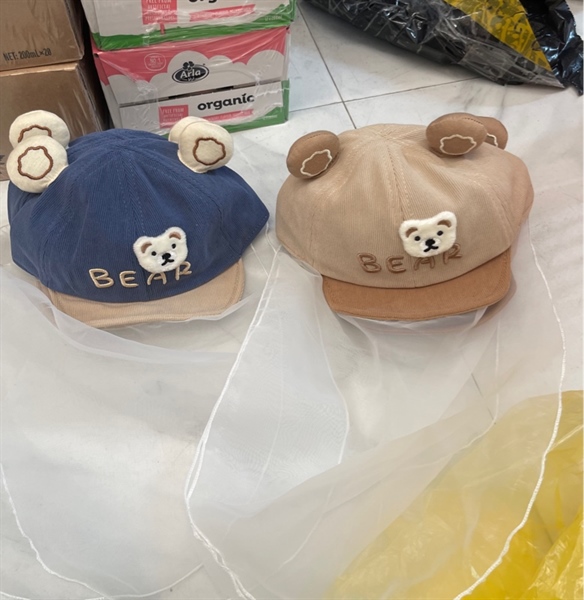 Mũ lưỡi trai gấu bear kèm khăn voan