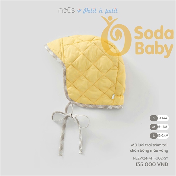 Nous Mũ lưỡi trai trùm tai chần bông màu vàng