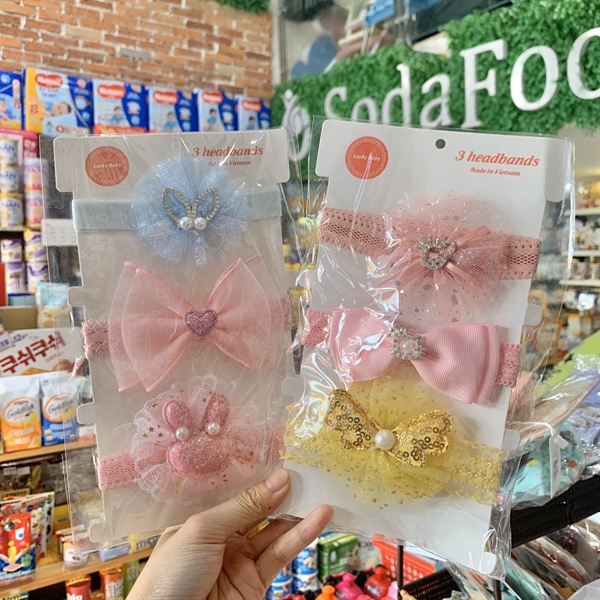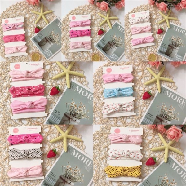Nous Băng đô nơ màu hồng họa tiết trắng