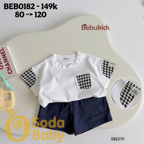Bộ ngắn phối tay Bebukids (80-120) - Trắng