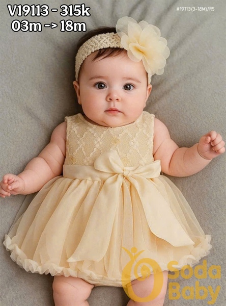 Đầm sát nách công chúa nhí kèm turban - Be